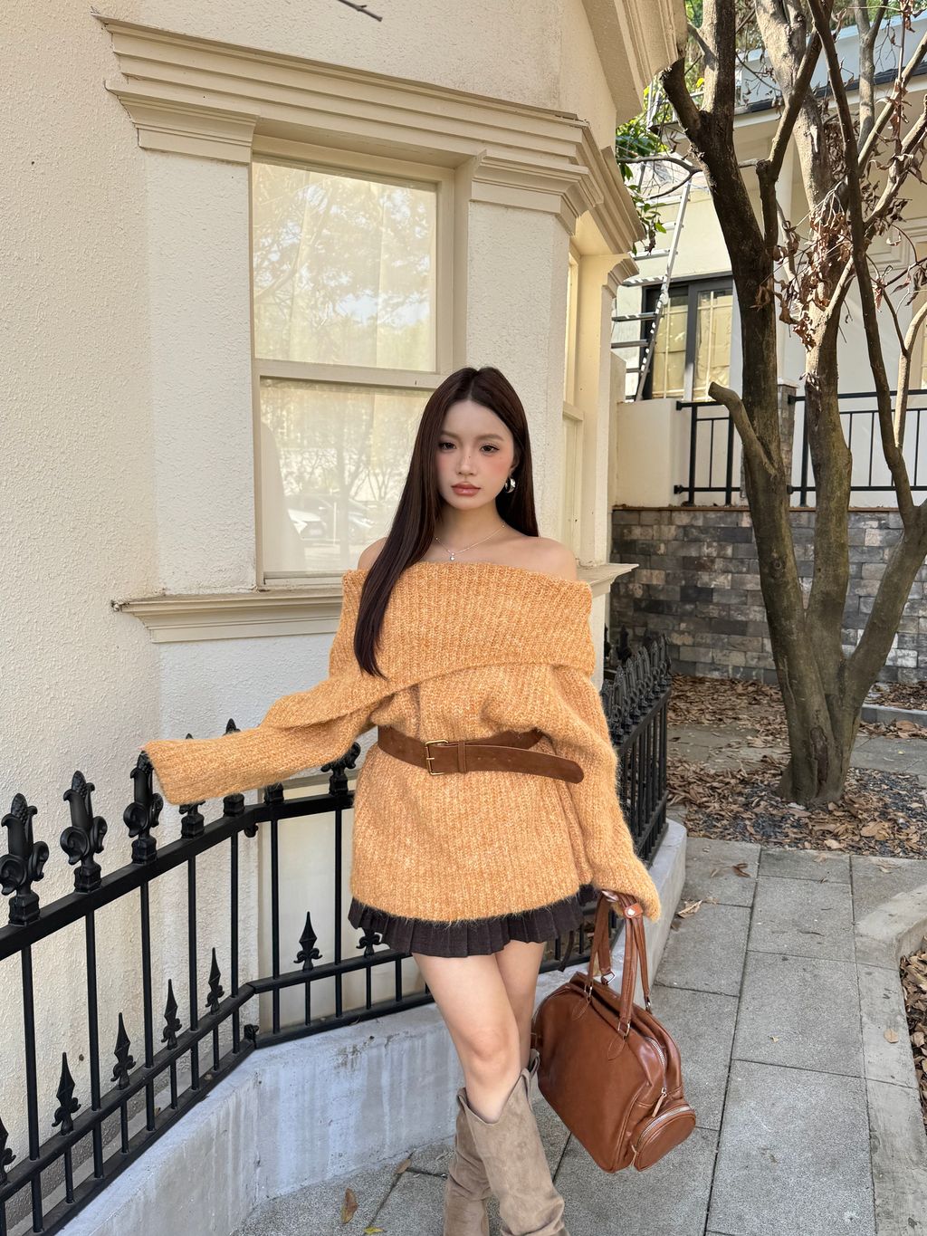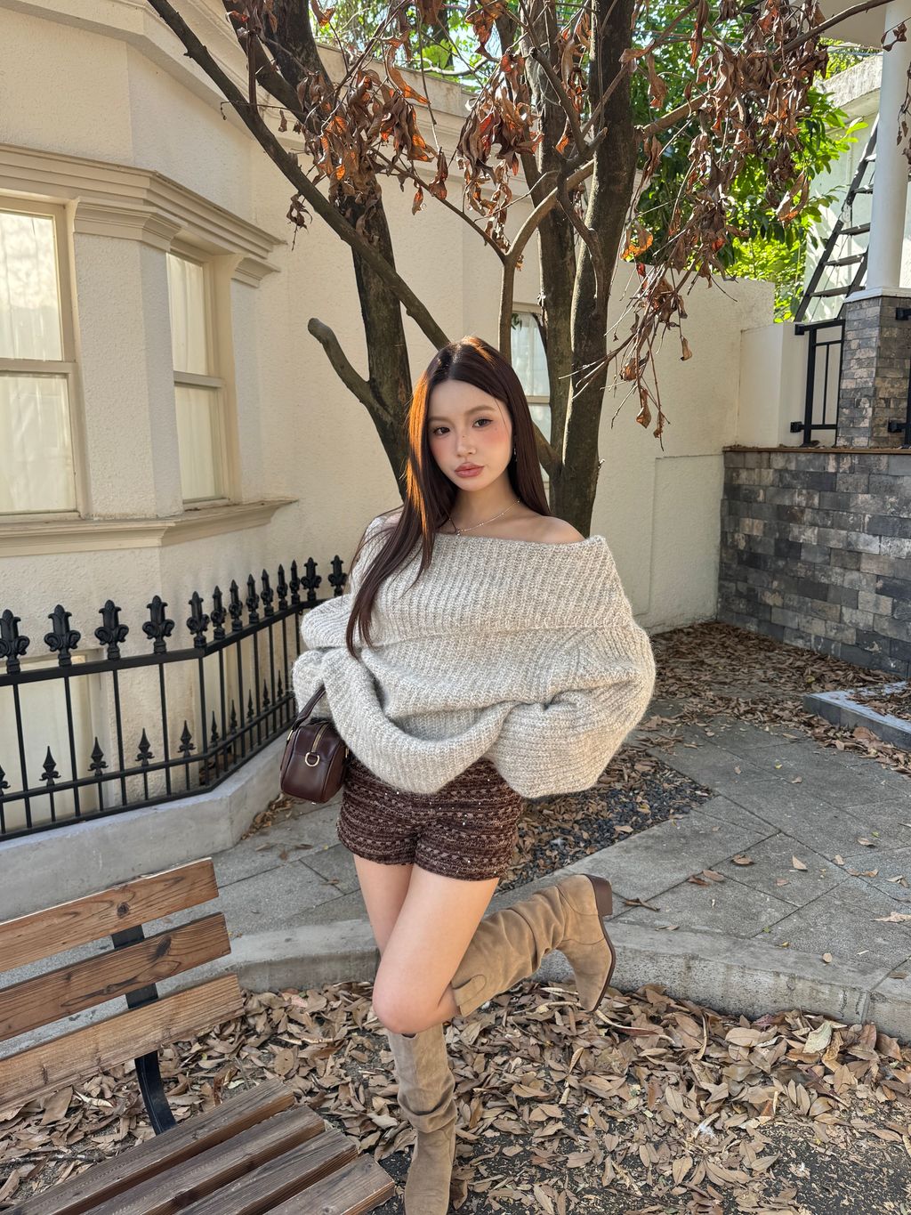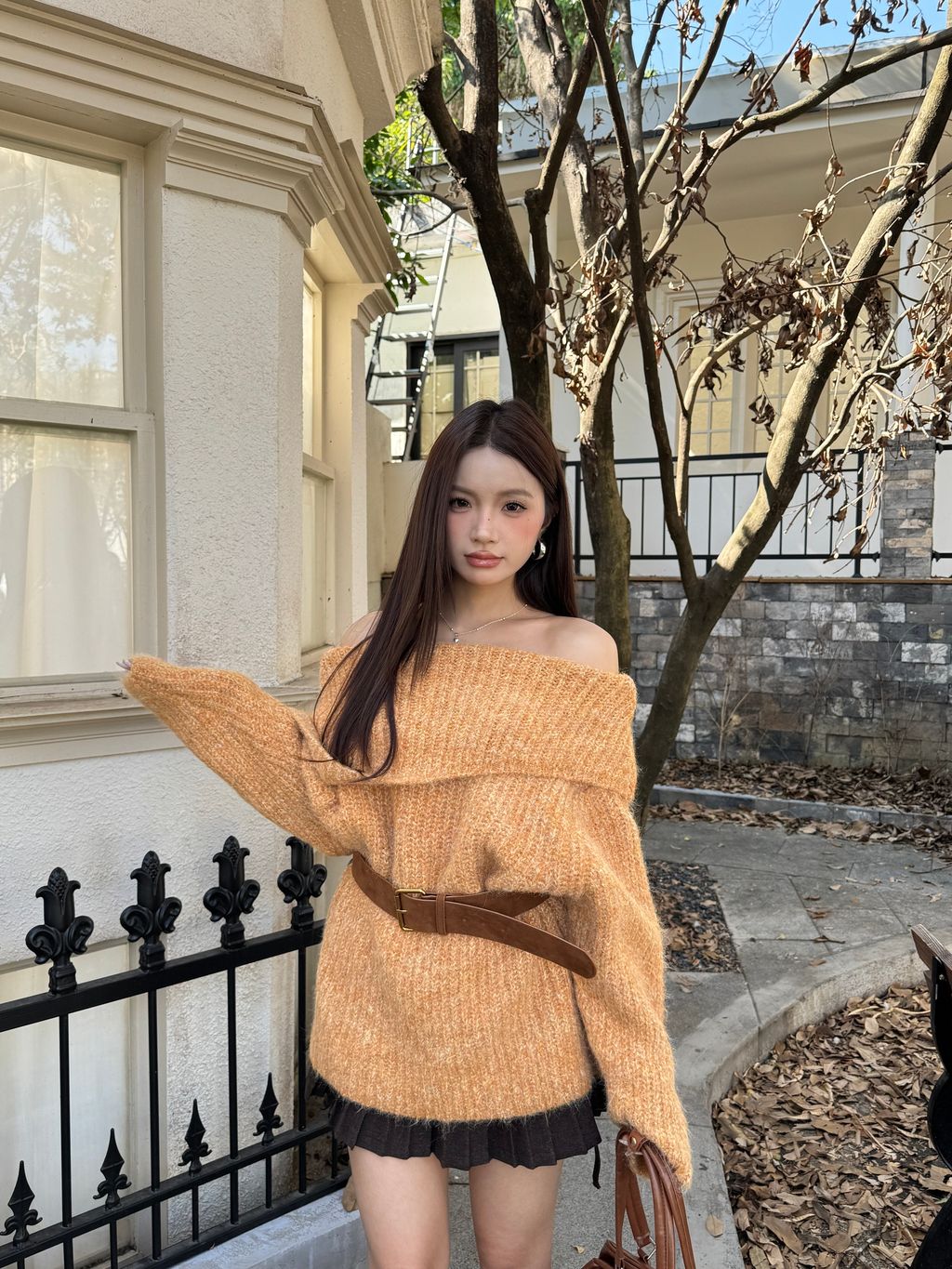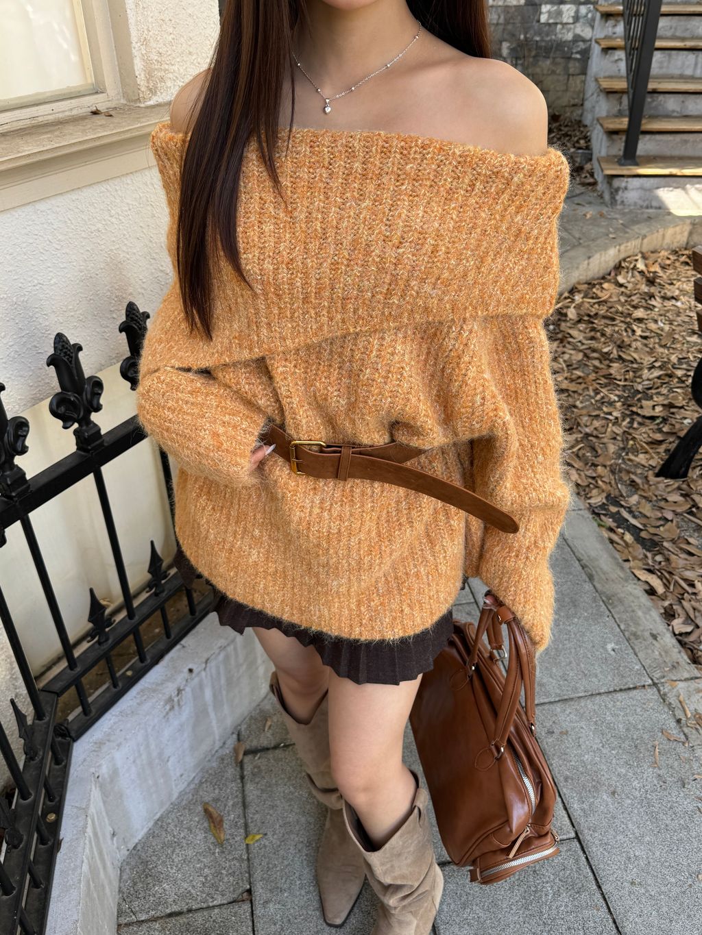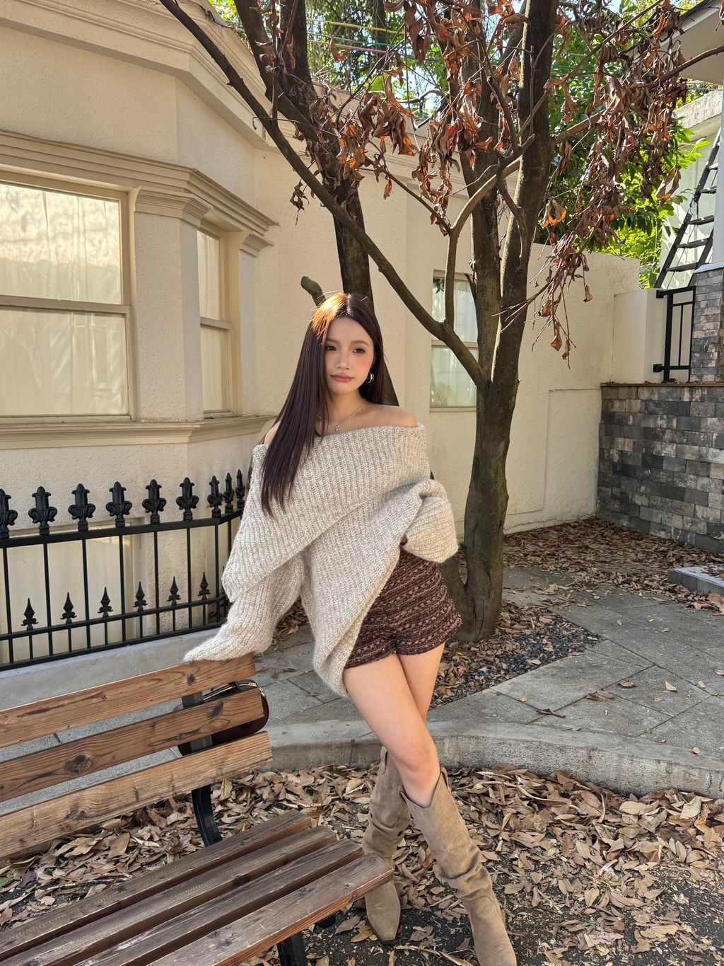 Q02韓系針織一字領