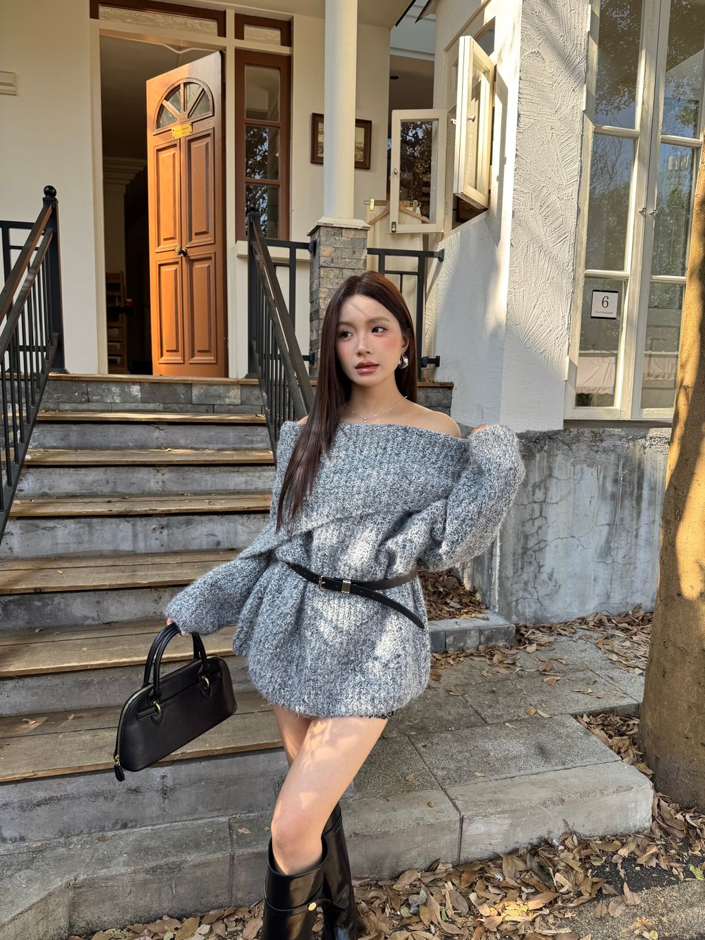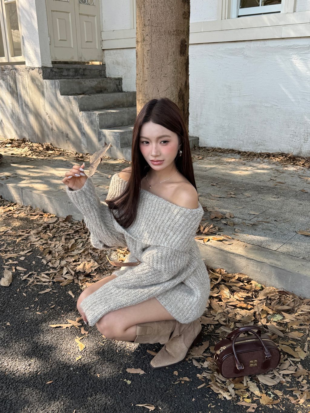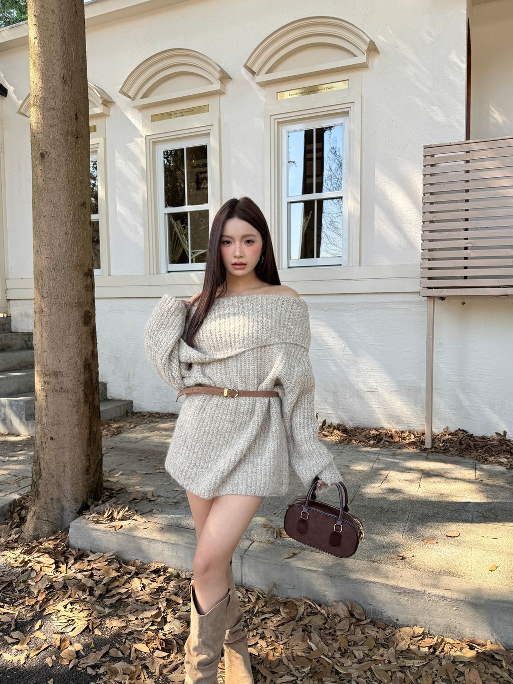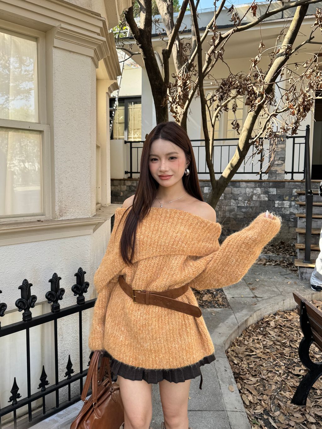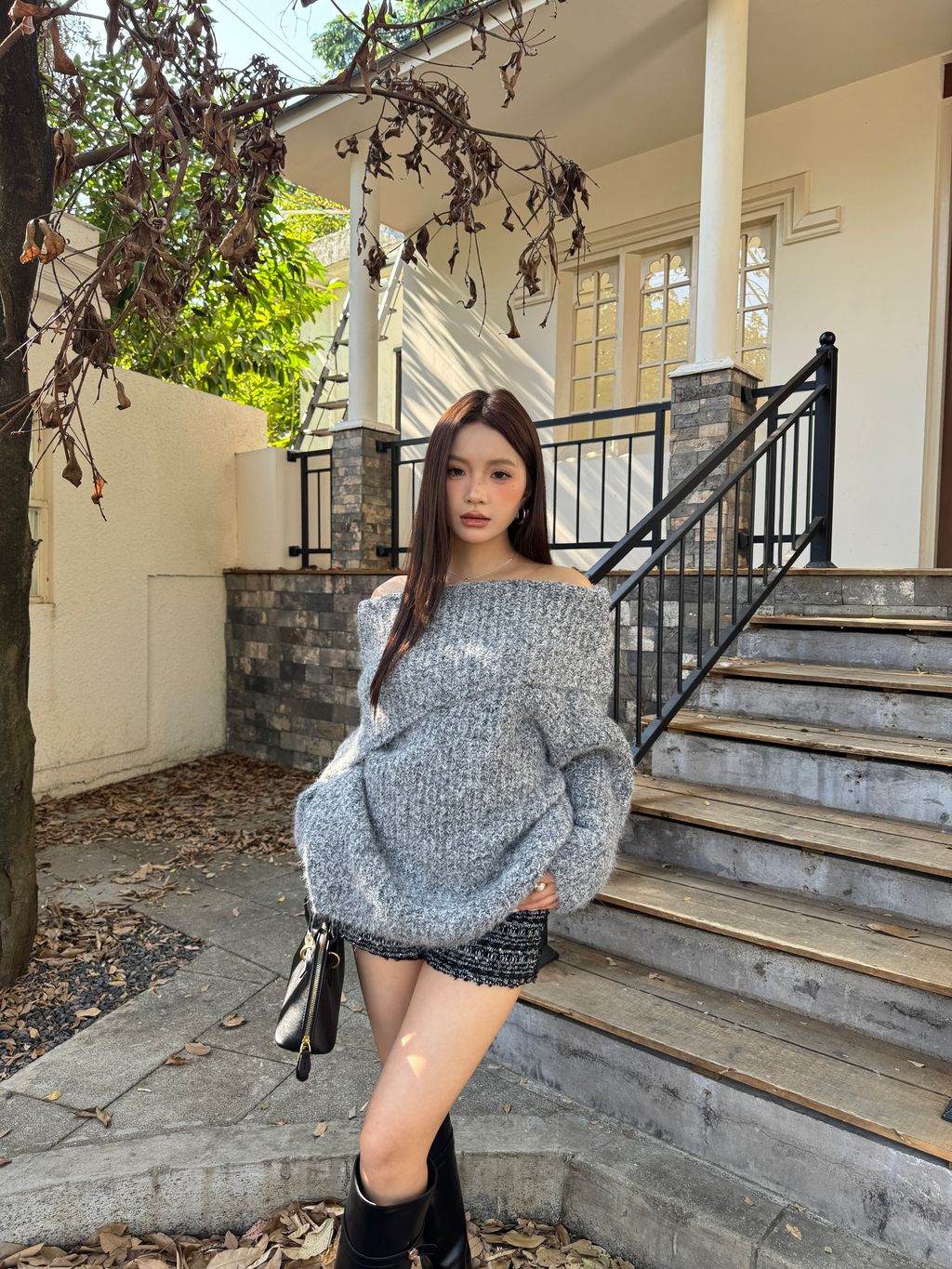 Q02韓系針織一字領
