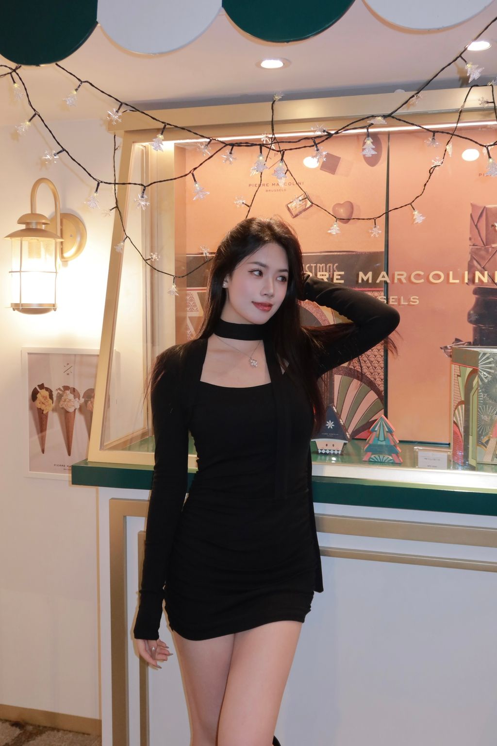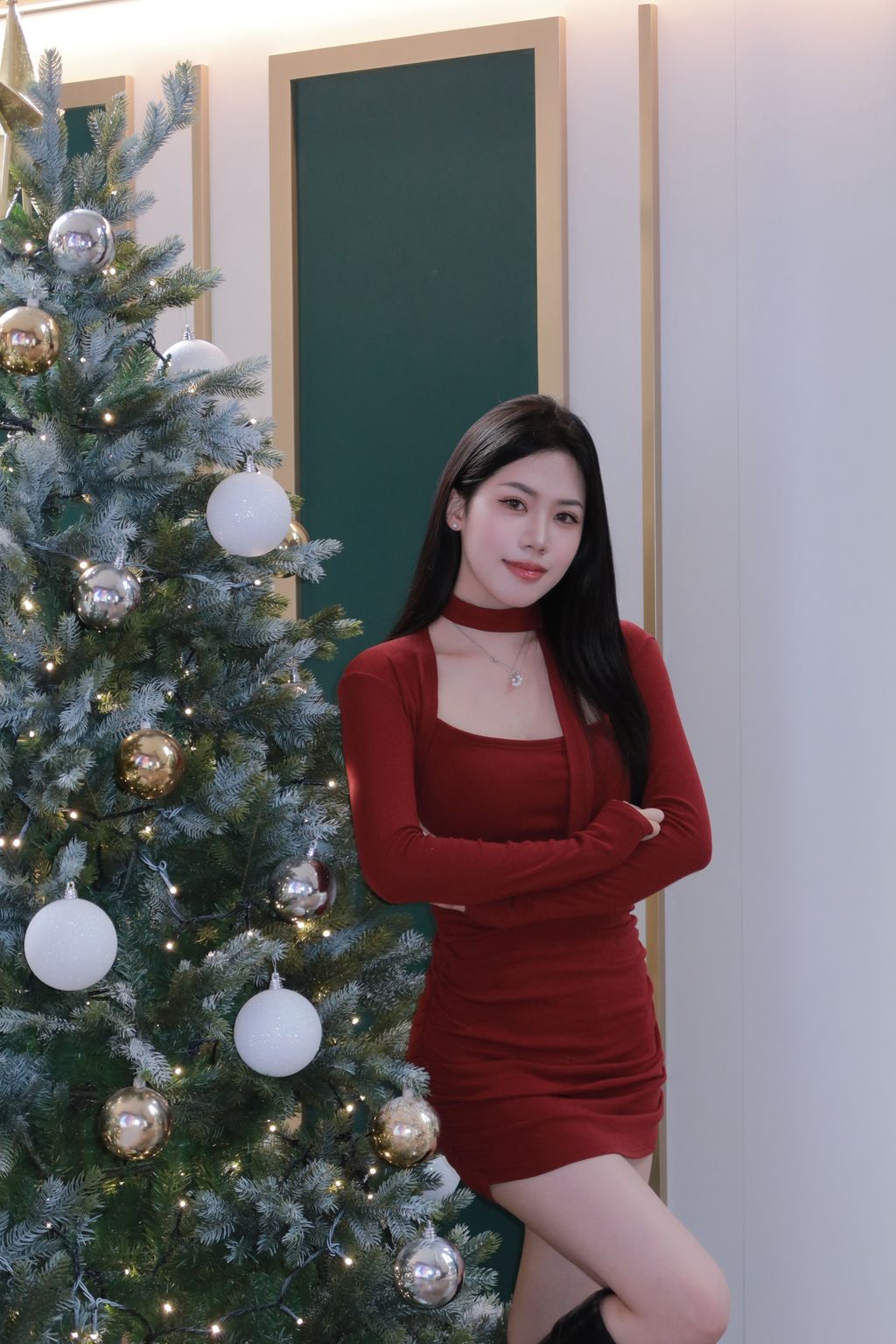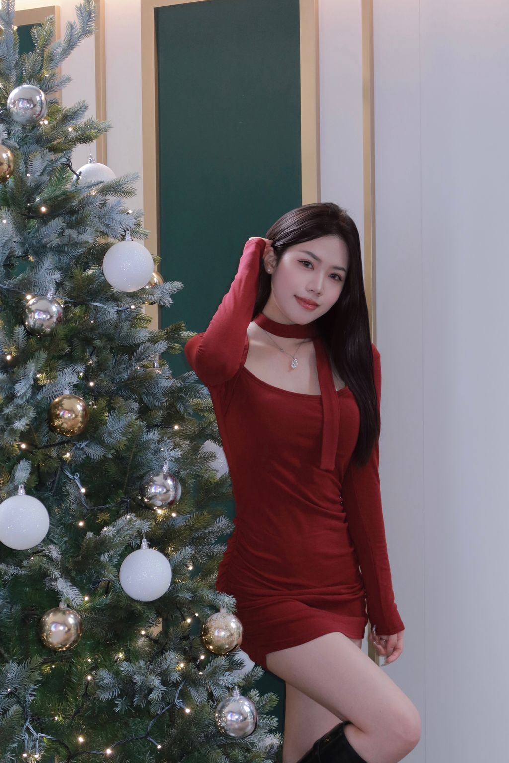 R01年末聚會方領抓皺連身裙